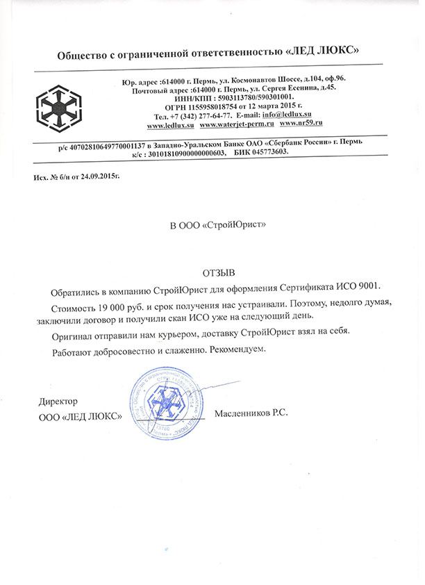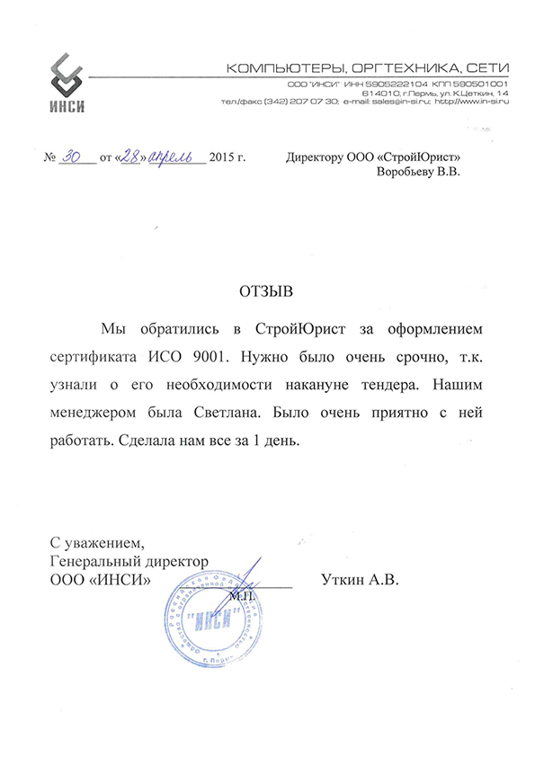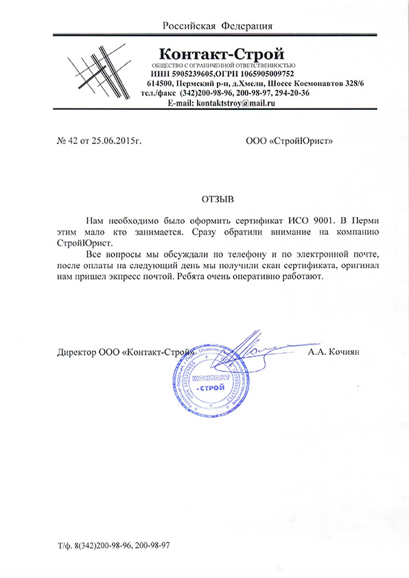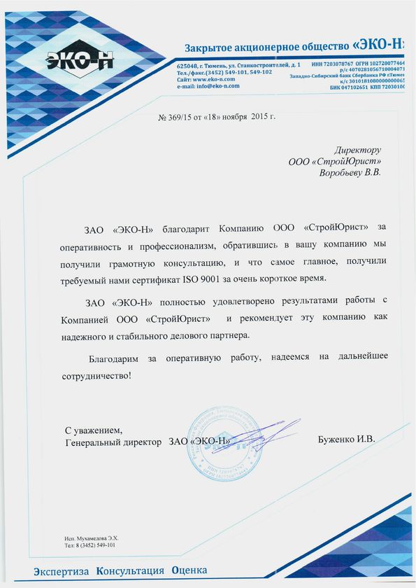 Отзывы клиентов "СтройЮрист" по ISO в Кургане