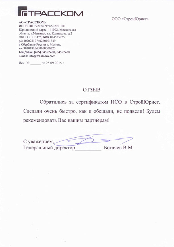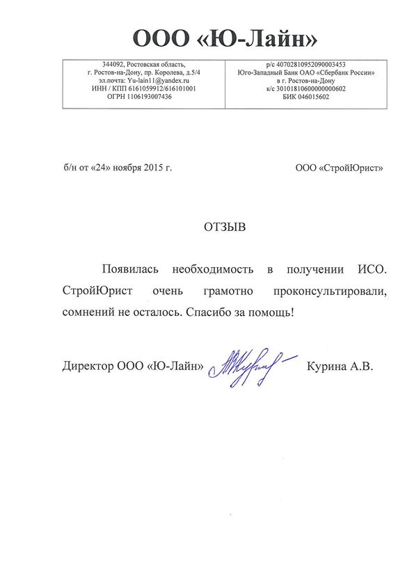 Отзывы клиентов "СтройЮрист" по ISO в Кургане