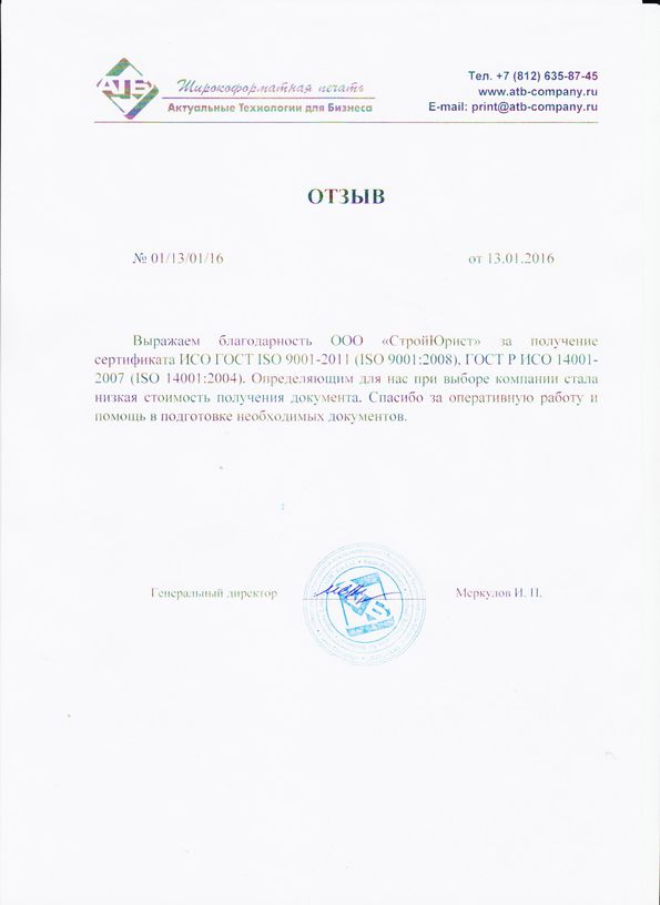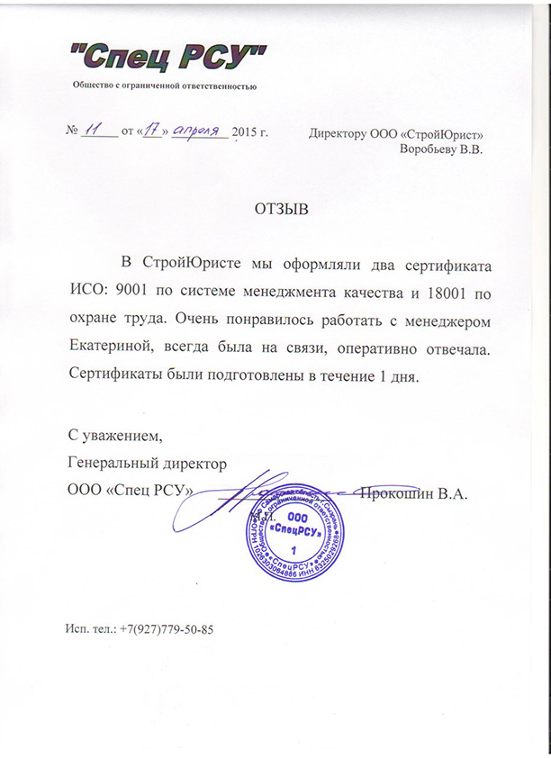 Отзывы клиентов "СтройЮрист" по ISO в Кургане