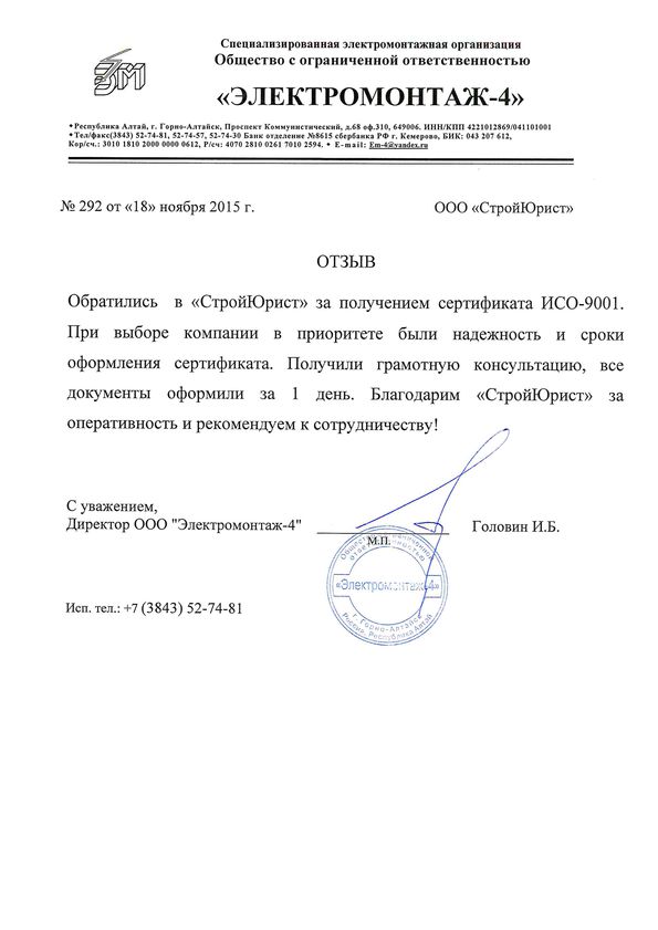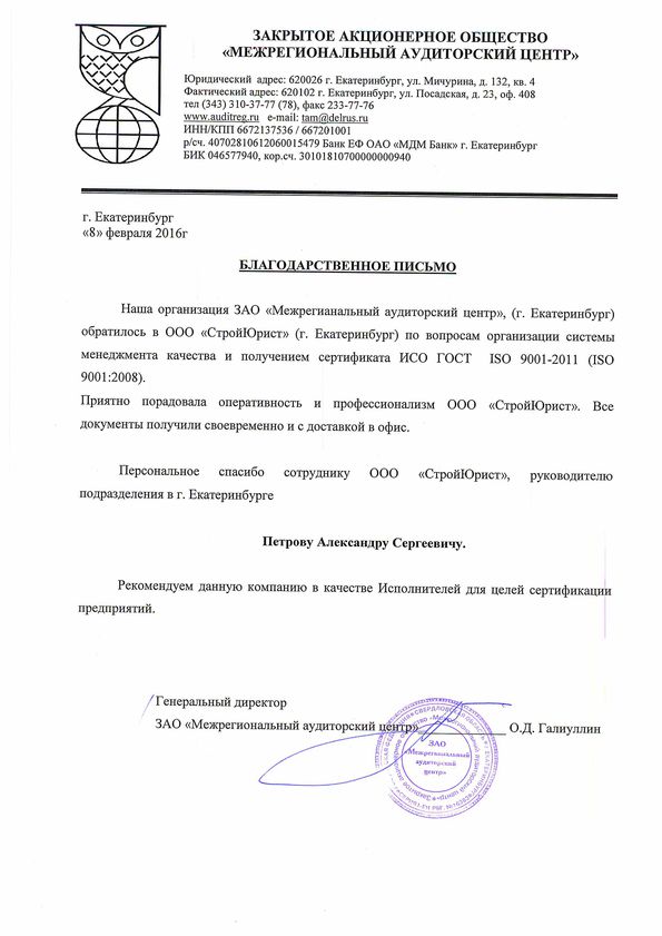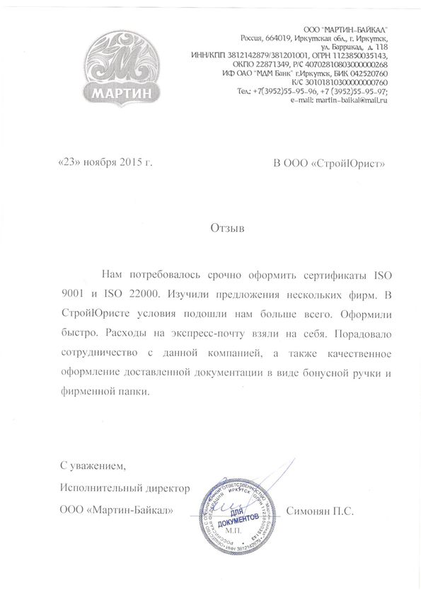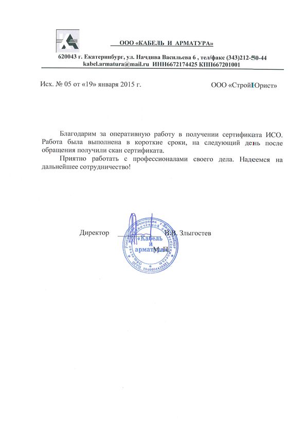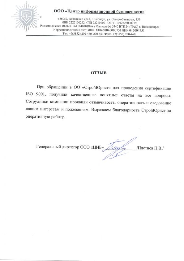 Отзывы клиентов "СтройЮрист" по ISO в Кургане