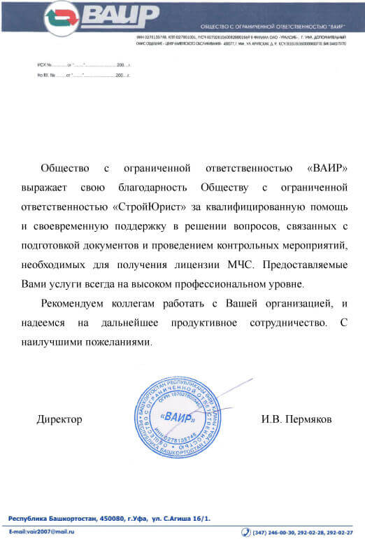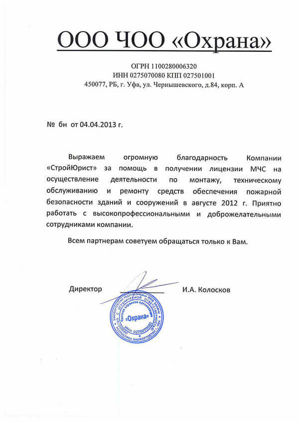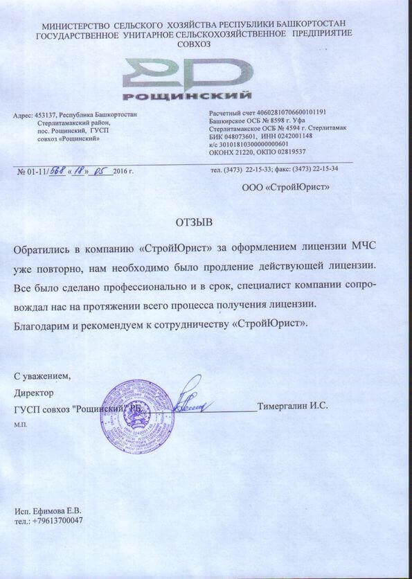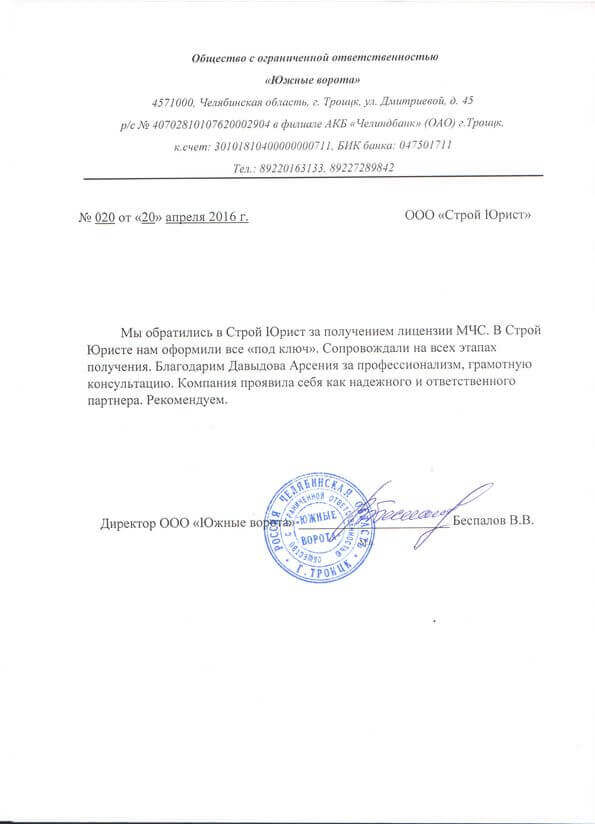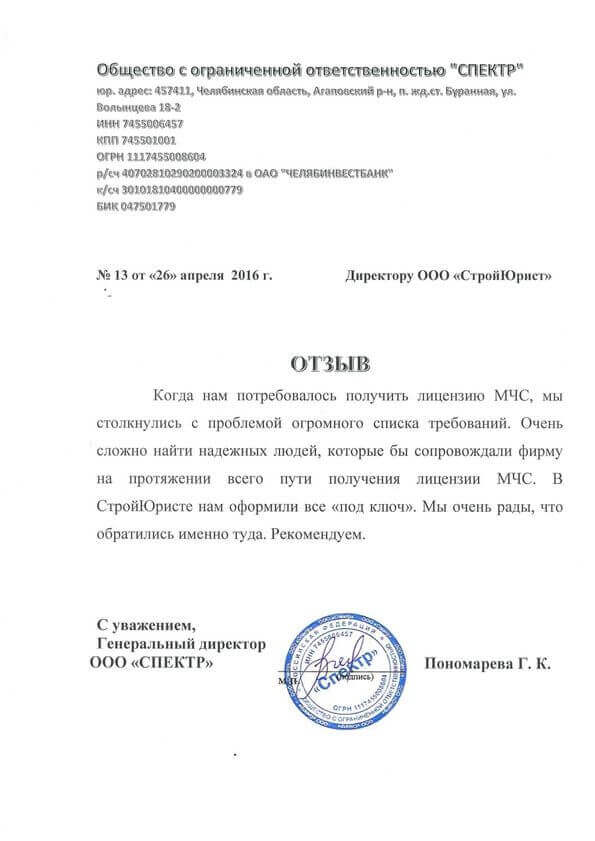 Отзывы клиентов "СтройЮрист" по лицензированию МЧС в Кургане