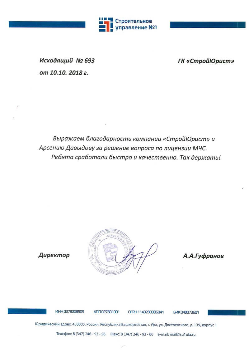 Отзывы клиентов "СтройЮрист" по лицензированию МЧС в Кургане
