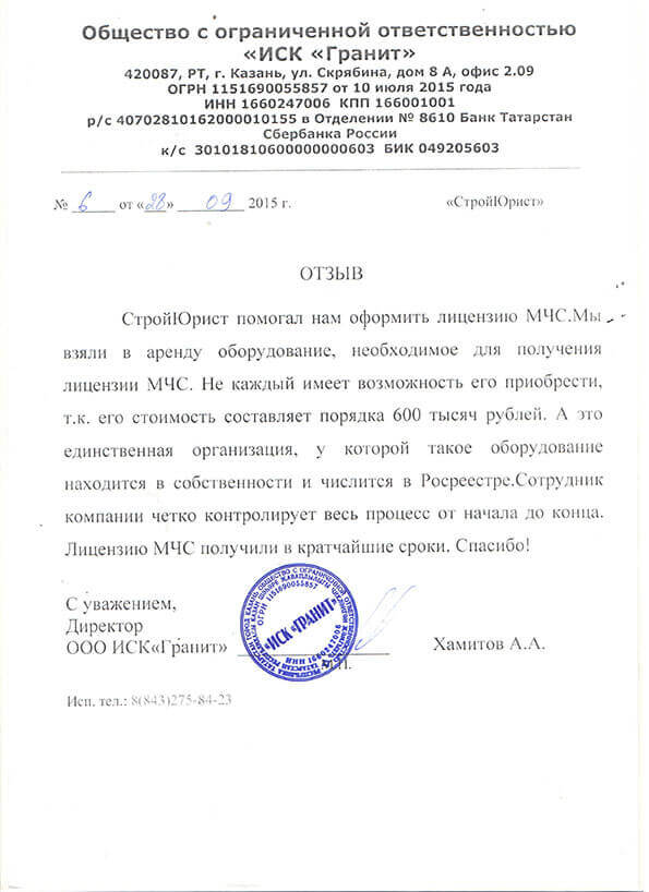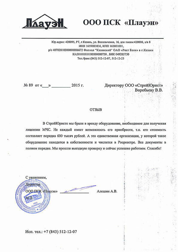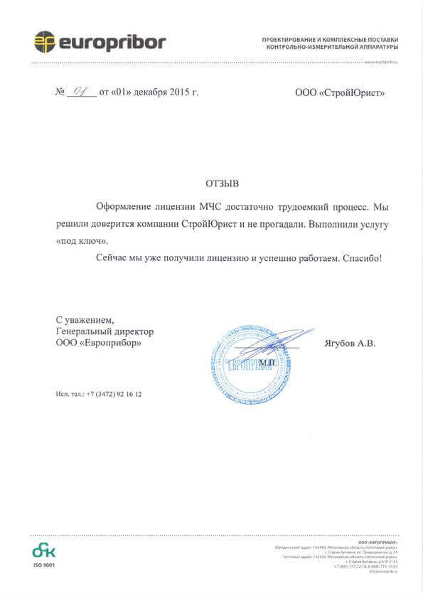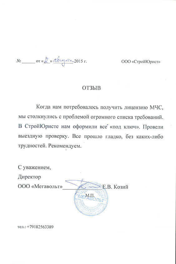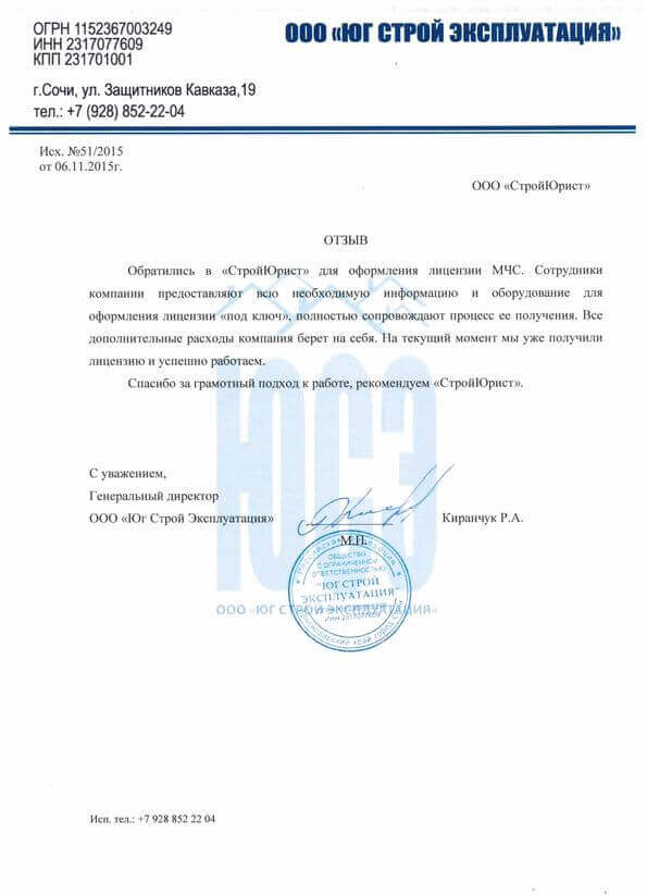 Отзывы клиентов "СтройЮрист" по лицензированию МЧС в Кургане