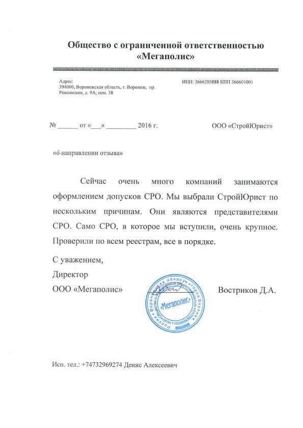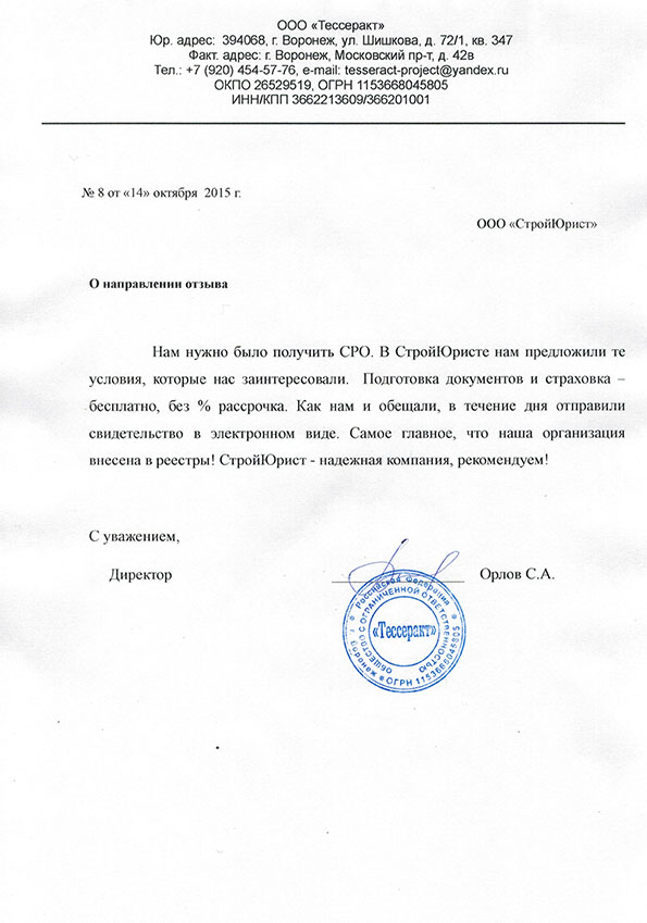Отзывы клиентов "СтройЮрист" по вступлению в СРО в Кургане