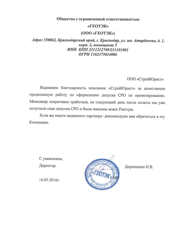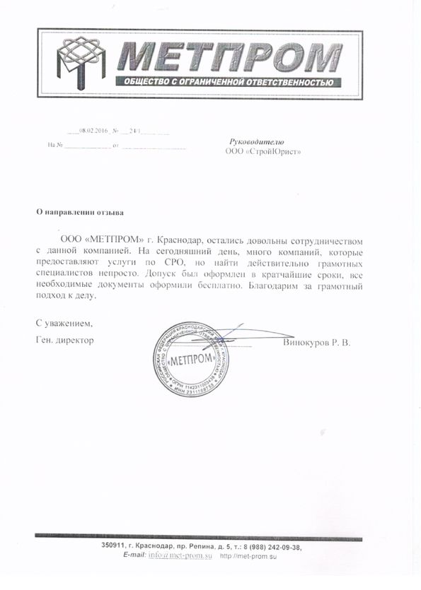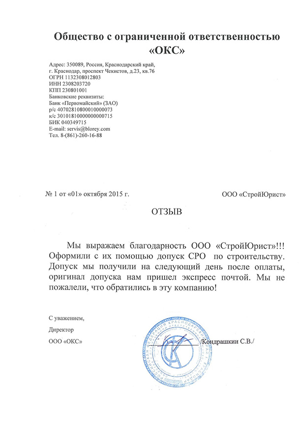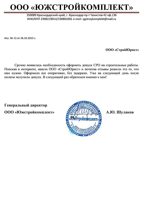 Отзывы клиентов "СтройЮрист" по вступлению в СРО в Кургане