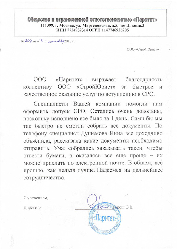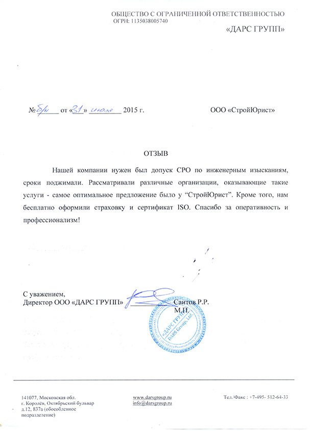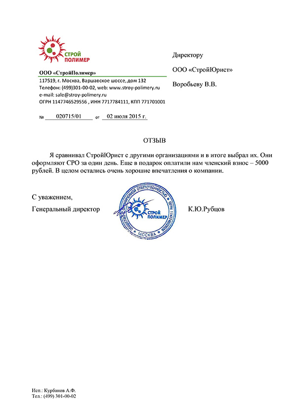 Отзывы клиентов "СтройЮрист" по вступлению в СРО в Кургане