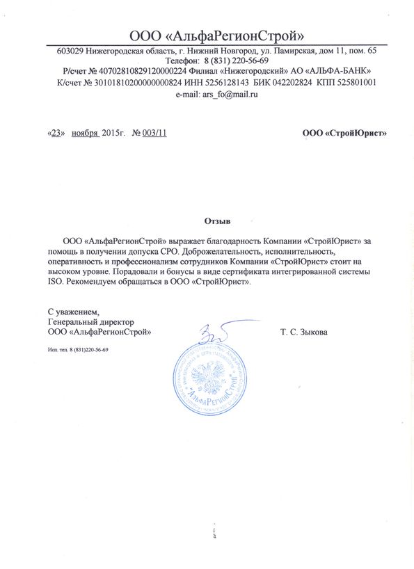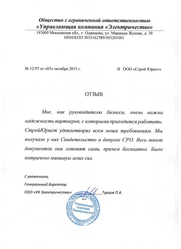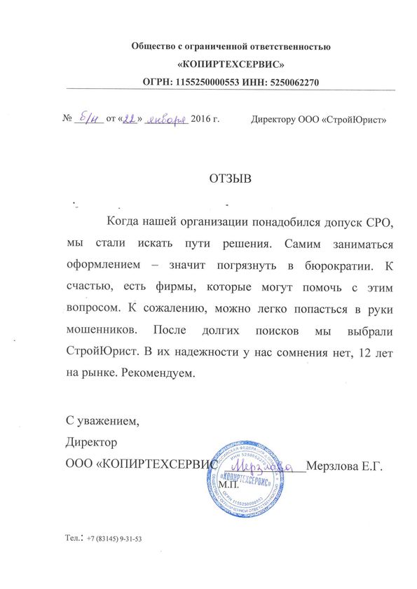 Отзывы клиентов "СтройЮрист" по вступлению в СРО в Кургане
