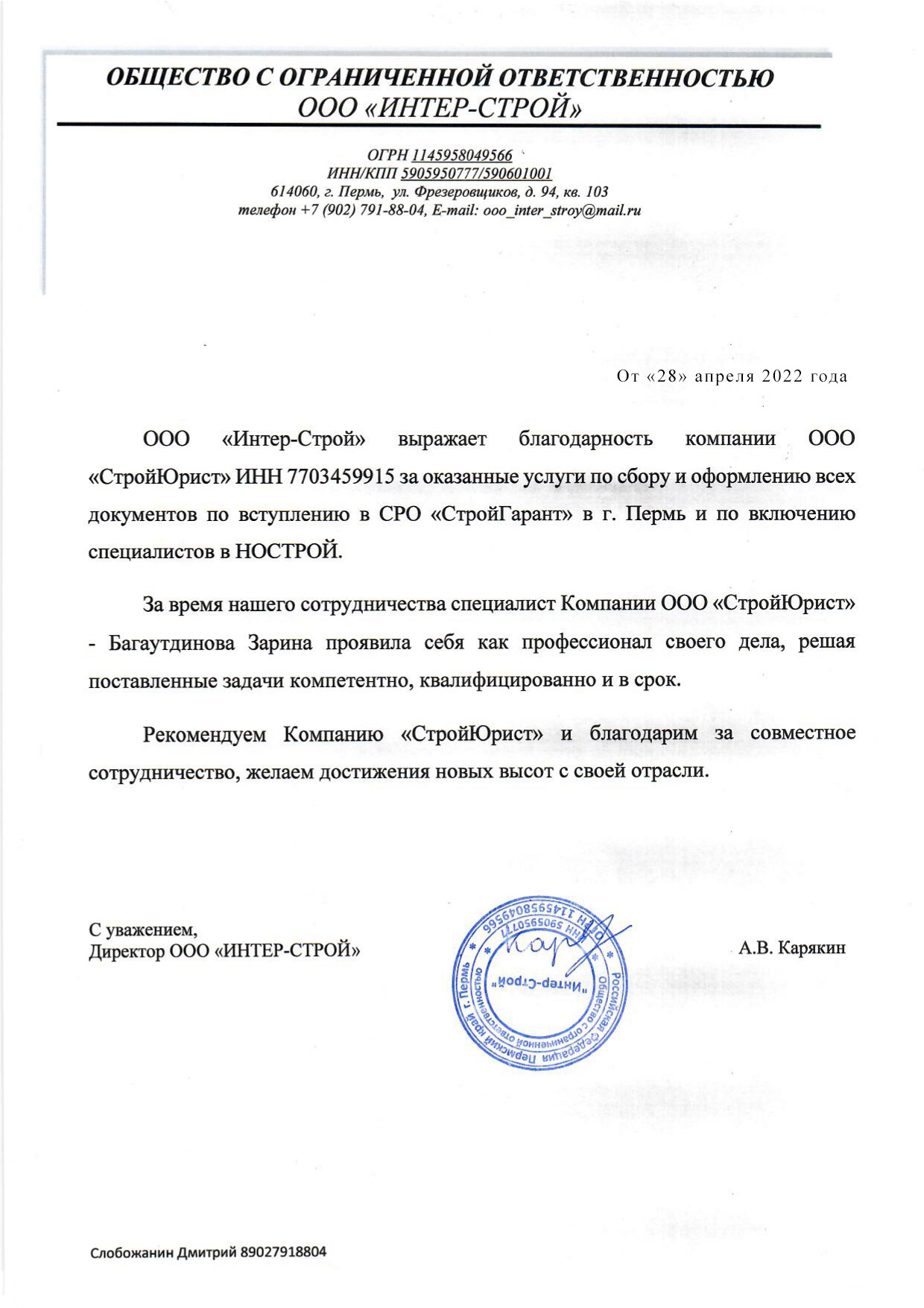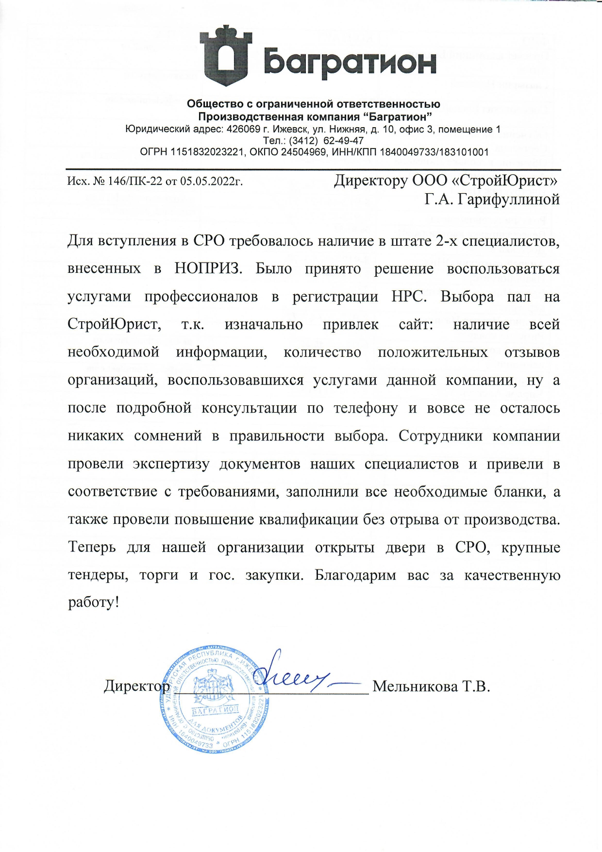 Отзывы клиентов "СтройЮрист" по вступлению в СРО в Кургане