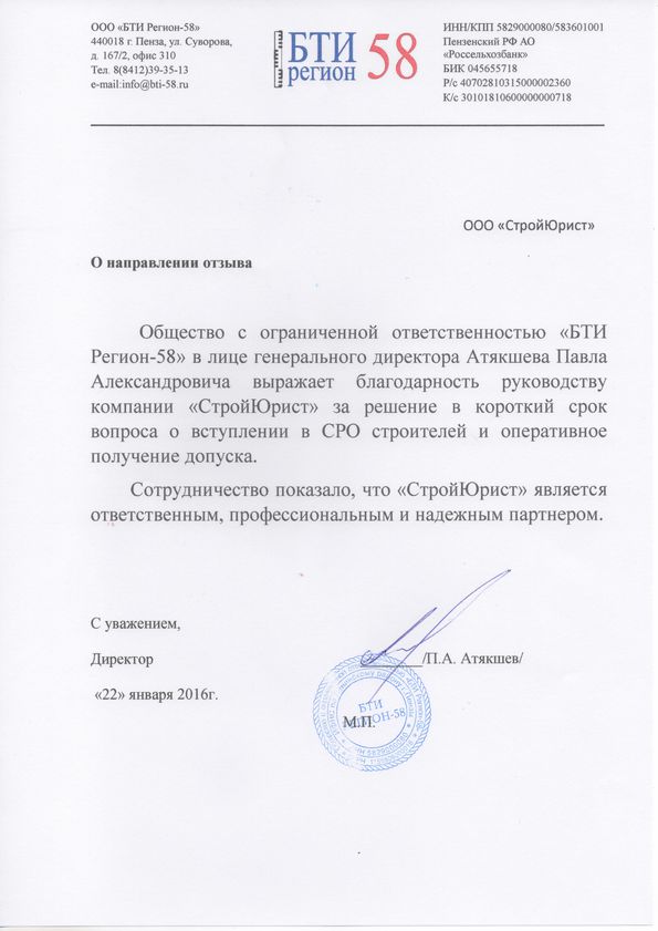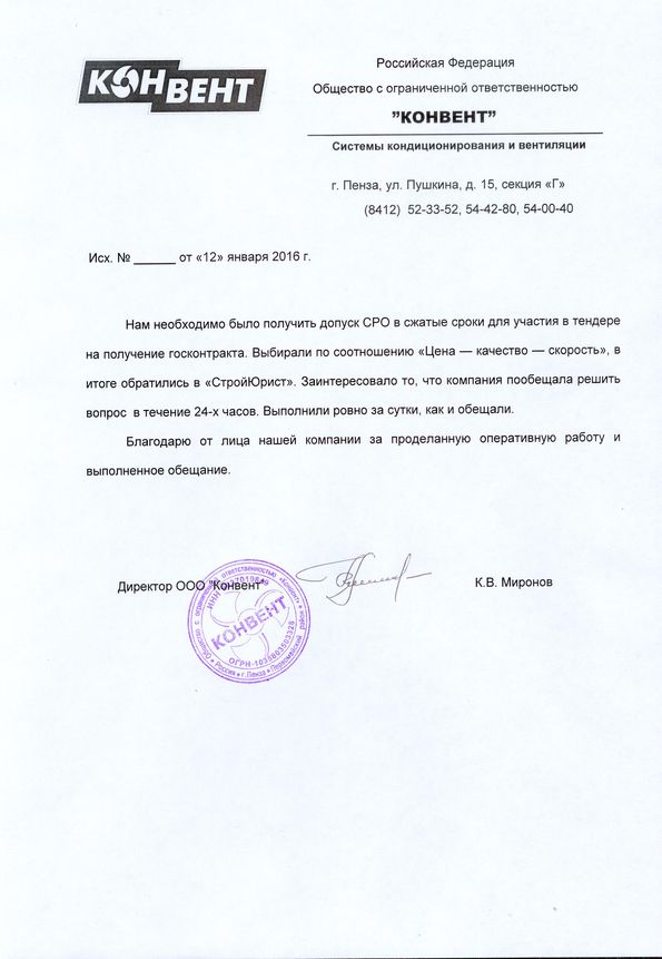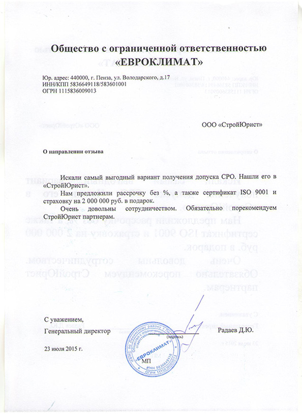 Отзывы клиентов "СтройЮрист" по вступлению в СРО в Кургане