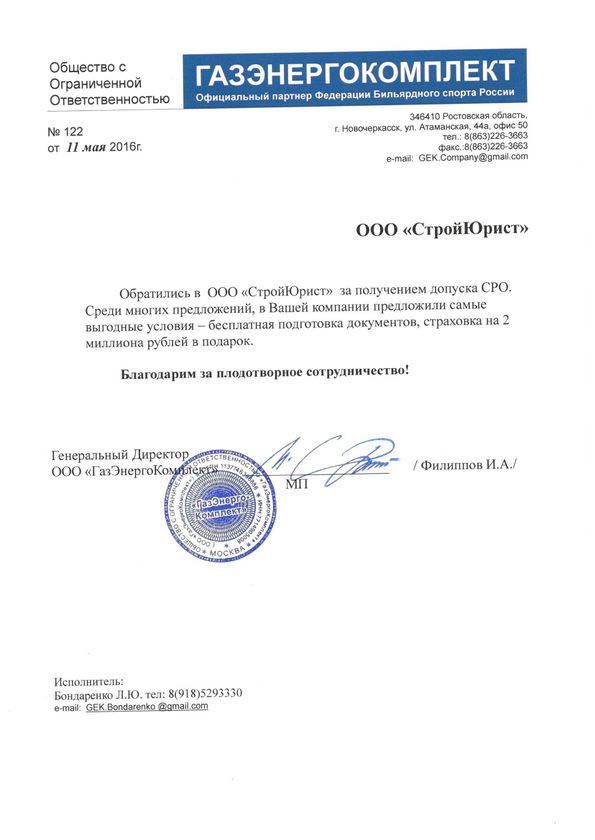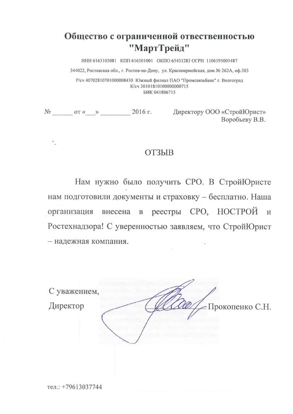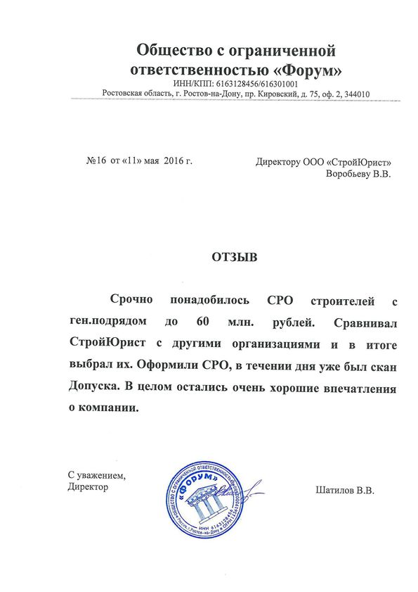 Отзывы клиентов "СтройЮрист" по вступлению в СРО в Кургане