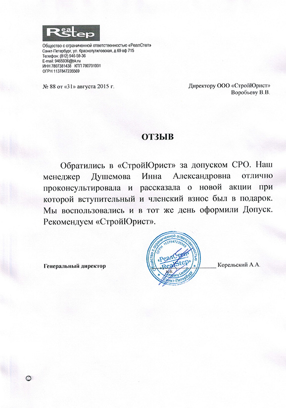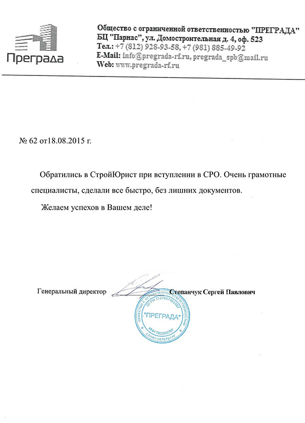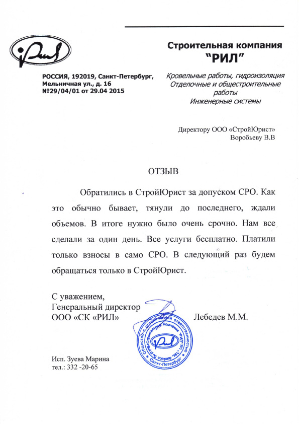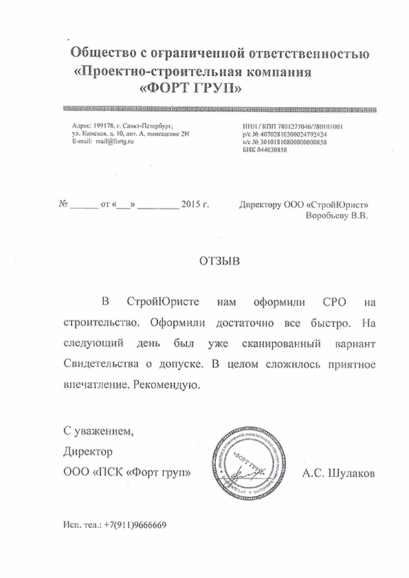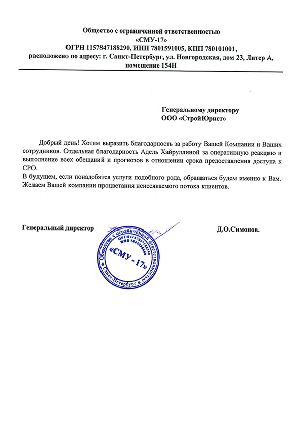 Отзывы клиентов "СтройЮрист" по вступлению в СРО в Кургане