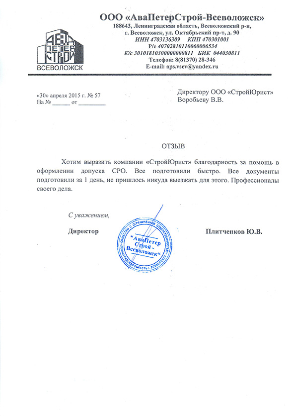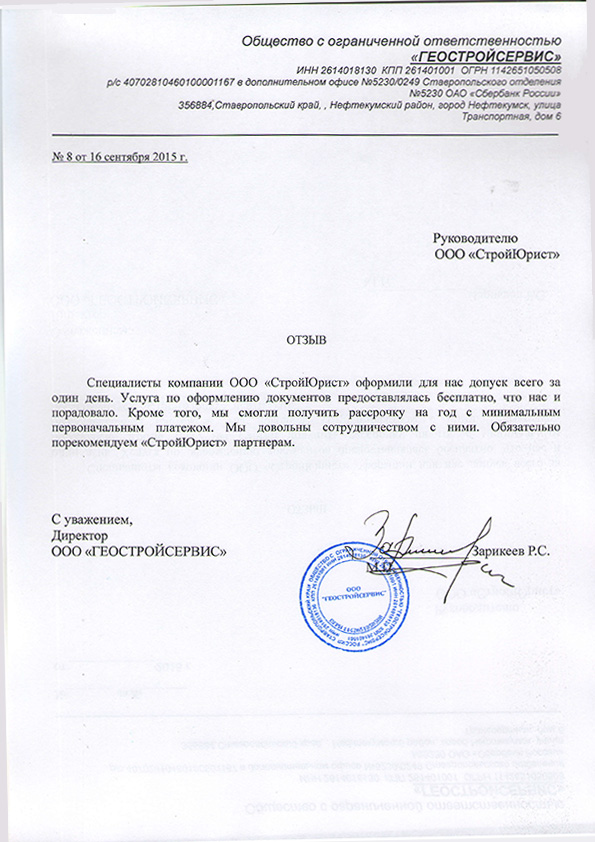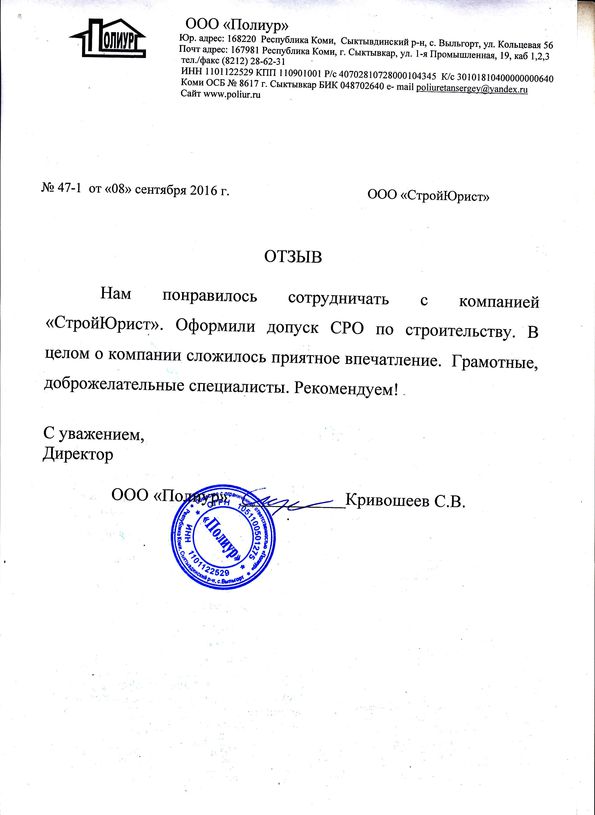 Отзывы клиентов "СтройЮрист" по вступлению в СРО в Кургане