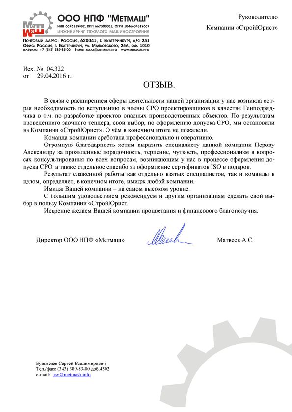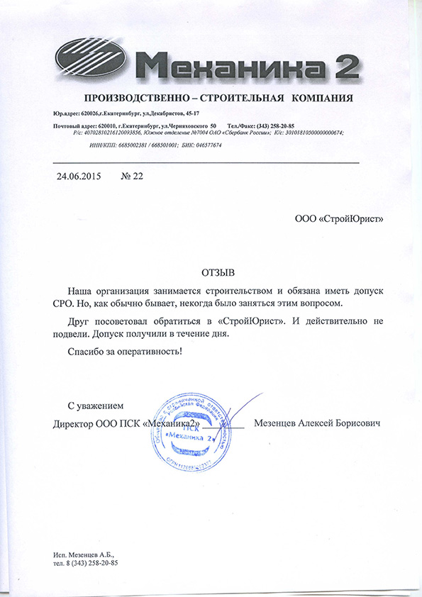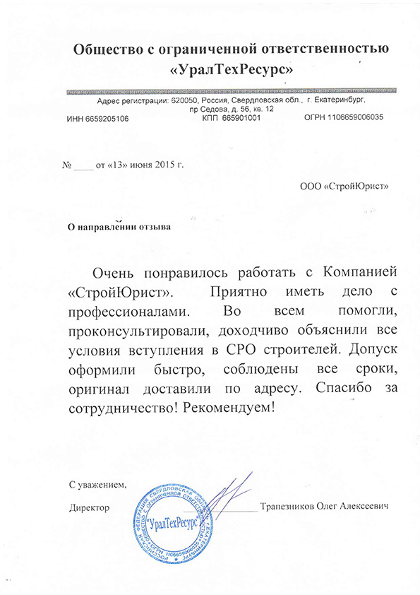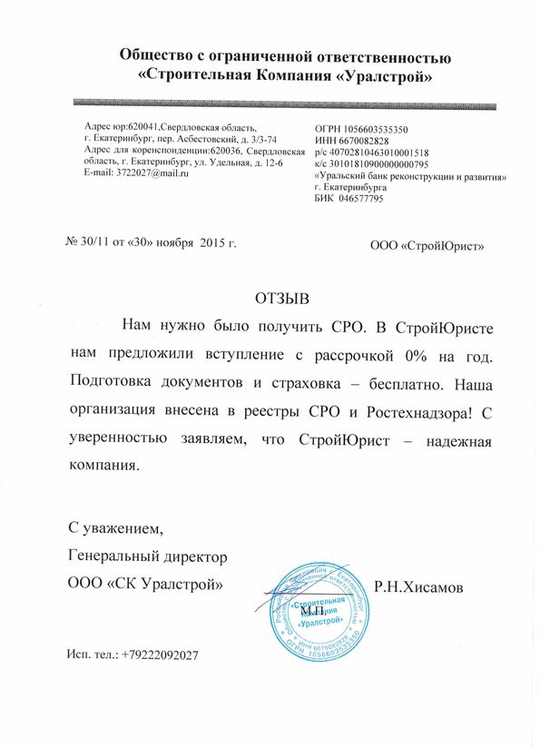 Отзывы клиентов "СтройЮрист" по вступлению в СРО в Кургане