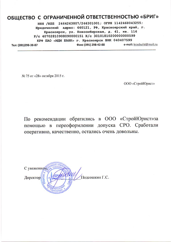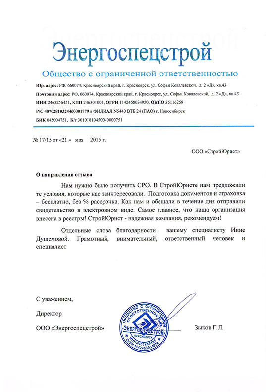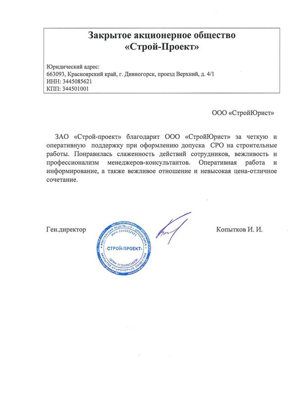Отзывы клиентов "СтройЮрист" по вступлению в СРО в Кургане