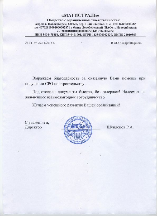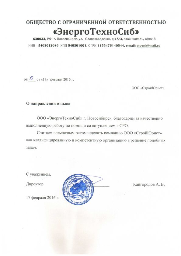 Отзывы клиентов "СтройЮрист" по вступлению в СРО в Кургане