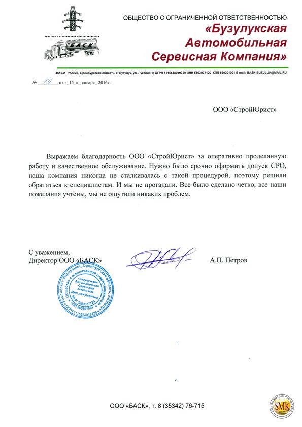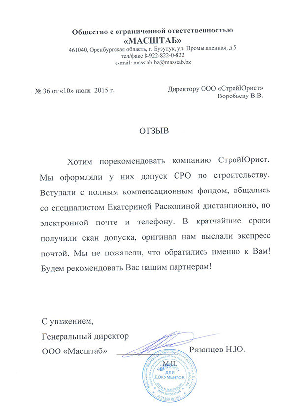 Отзывы клиентов "СтройЮрист" по вступлению в СРО в Кургане