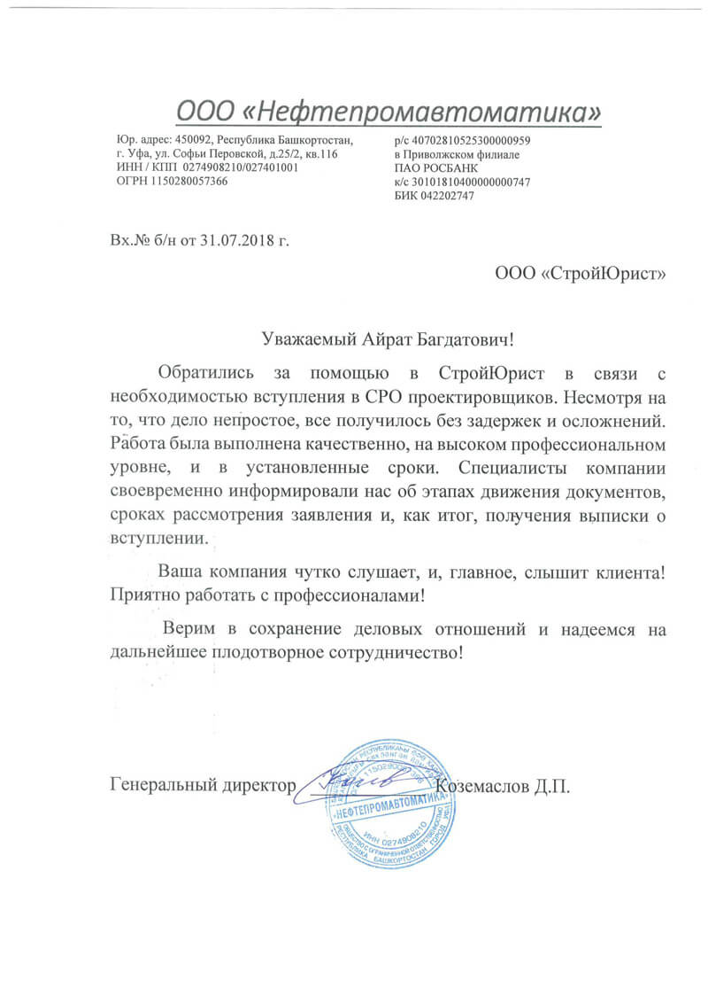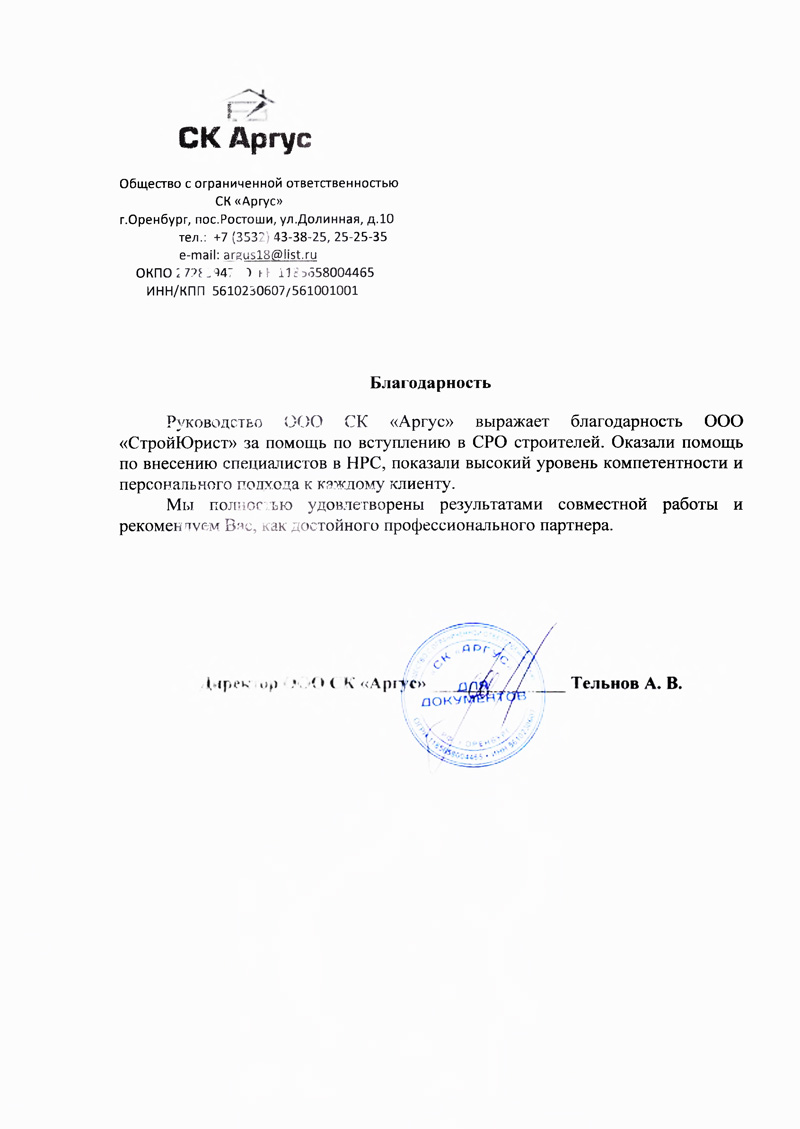 Отзывы клиентов "СтройЮрист" по вступлению в СРО в Кургане