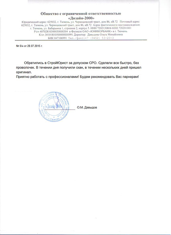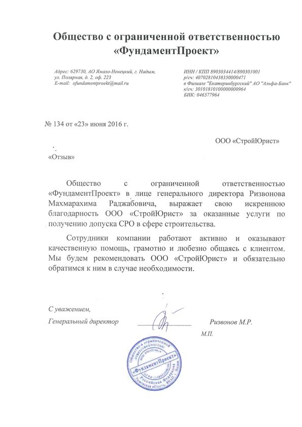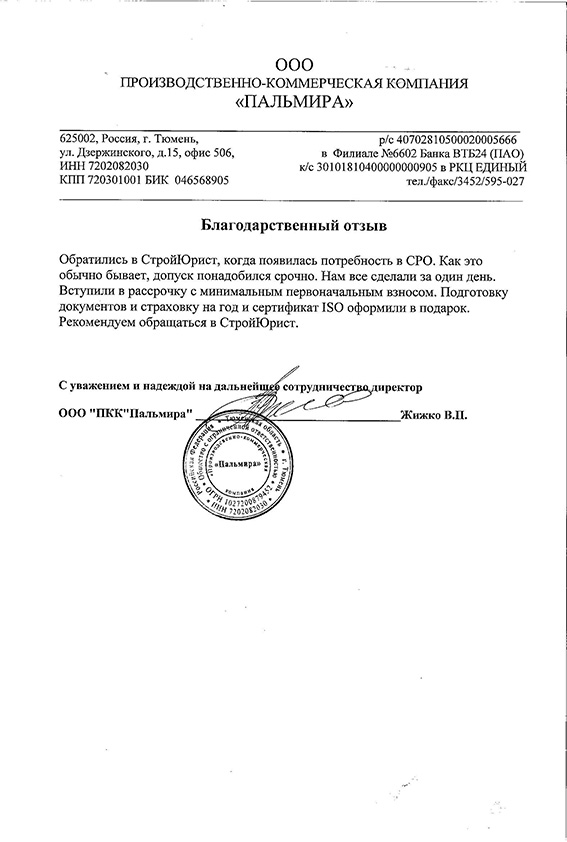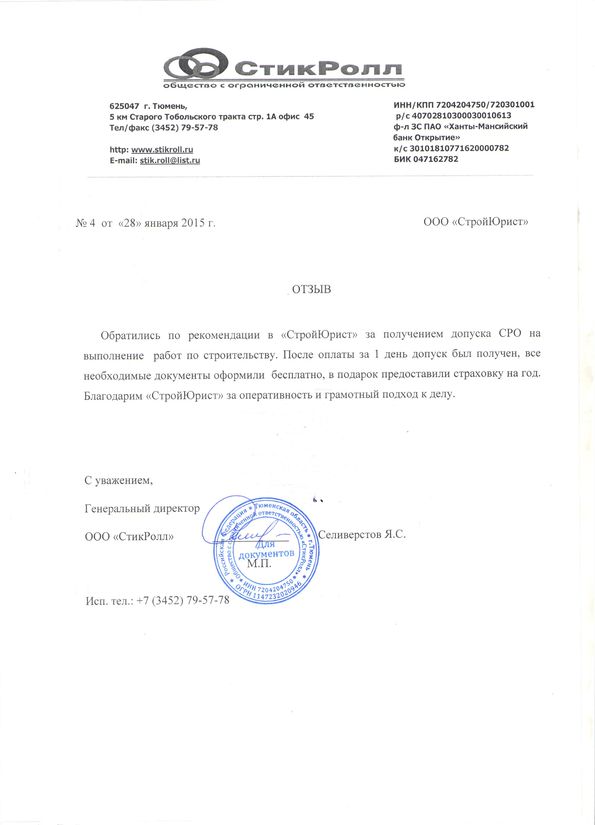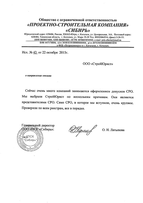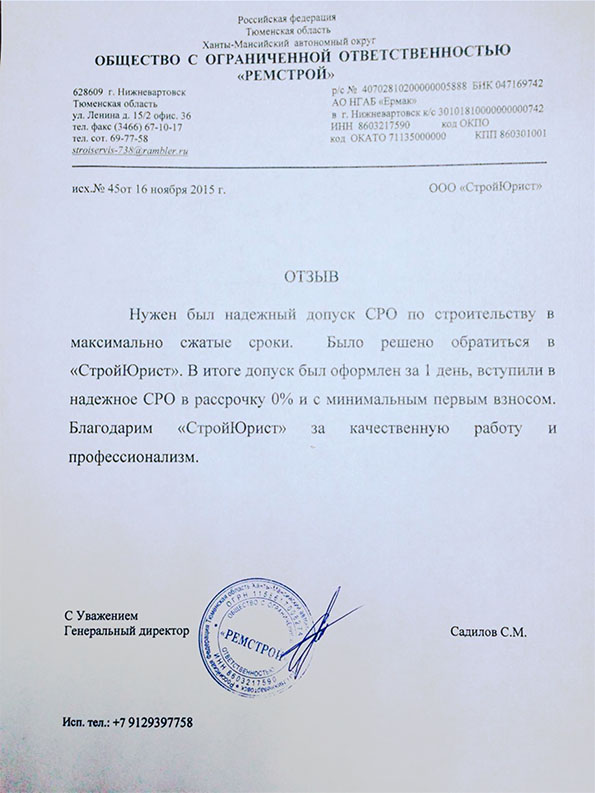 Отзывы клиентов "СтройЮрист" по вступлению в СРО в Кургане