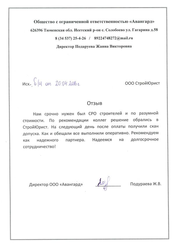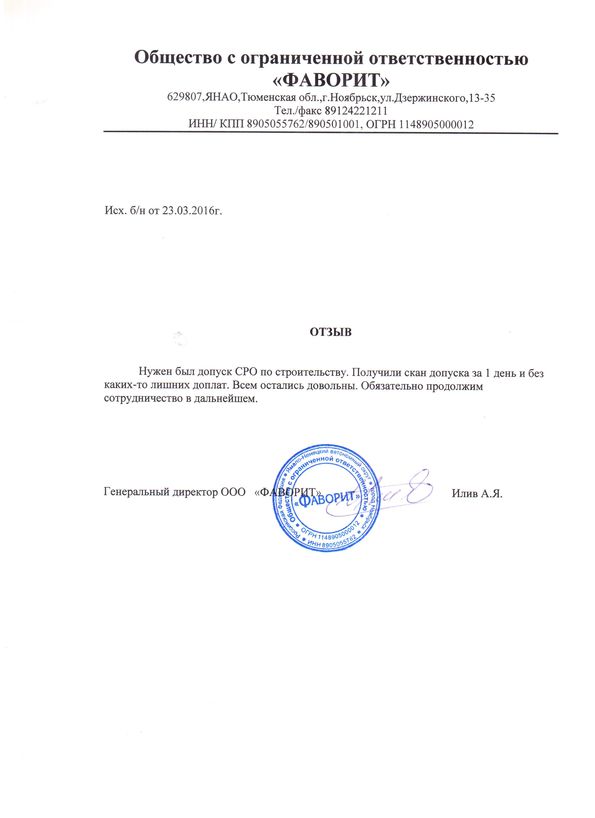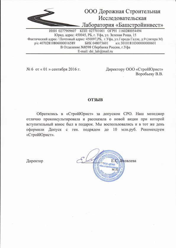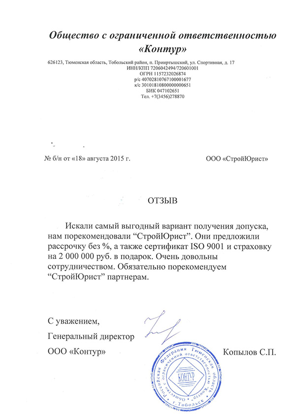 Отзывы клиентов "СтройЮрист" по вступлению в СРО в Кургане