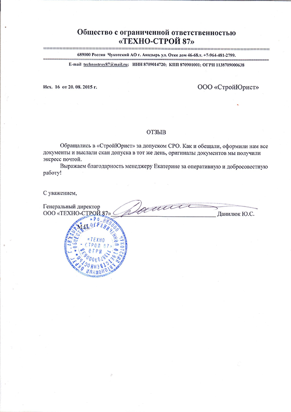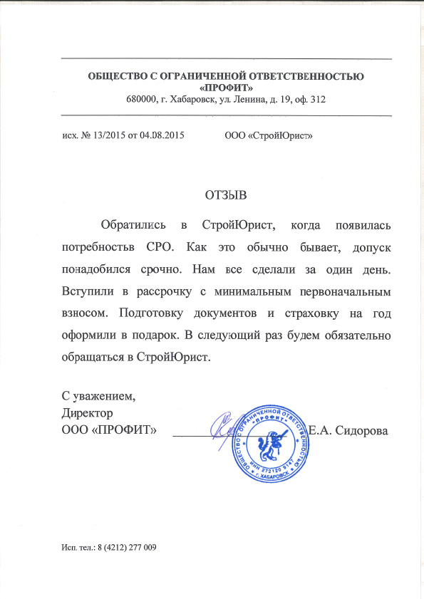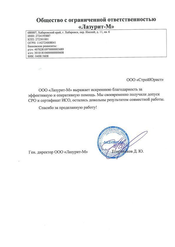 Отзывы клиентов "СтройЮрист" по вступлению в СРО в Кургане