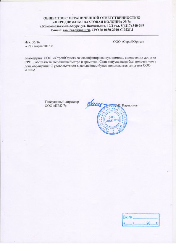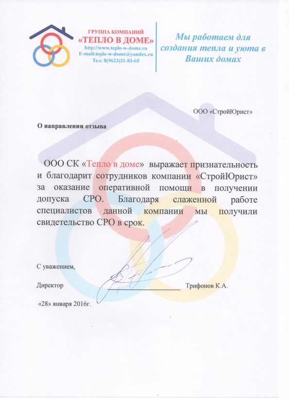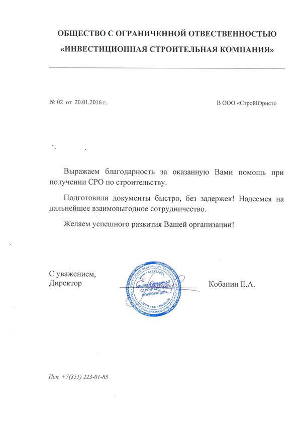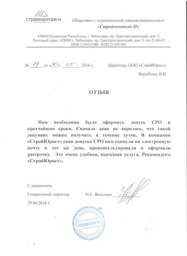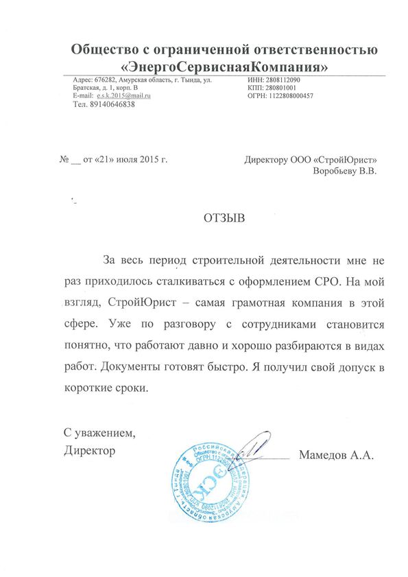 Отзывы клиентов "СтройЮрист" по вступлению в СРО в Кургане