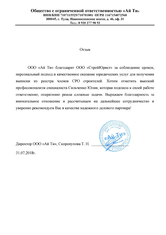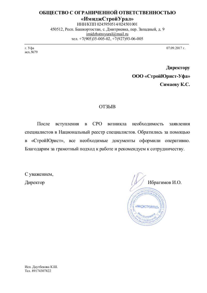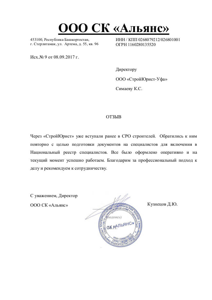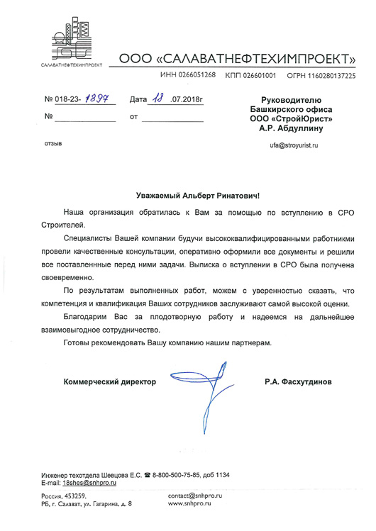 Отзывы клиентов "СтройЮрист" по вступлению в СРО в Кургане