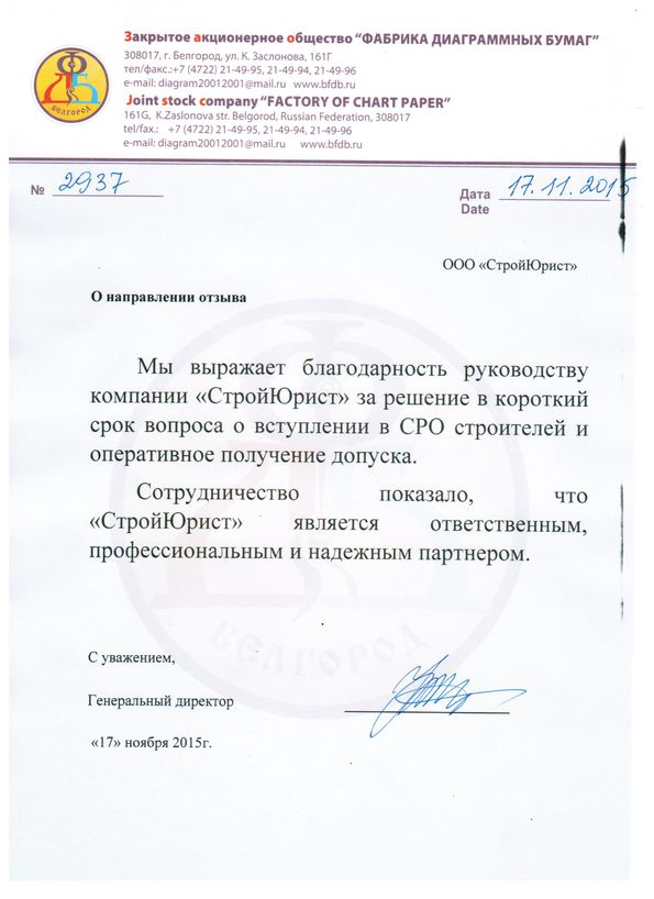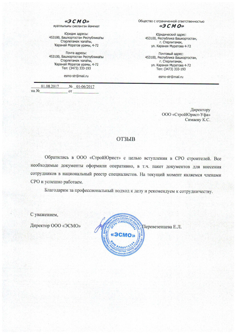 Отзывы клиентов "СтройЮрист" по вступлению в СРО в Кургане